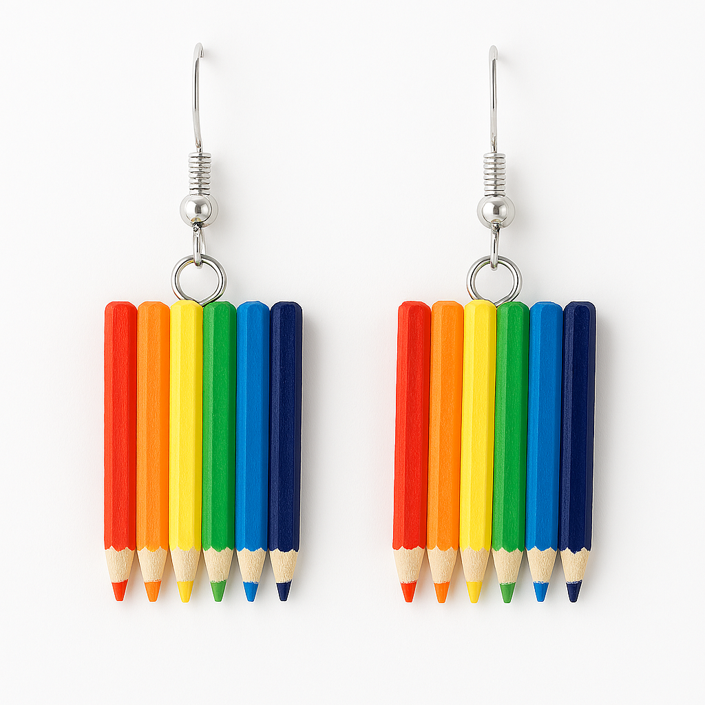 Celebrate creativity and classroom spirit with these eye-catching Rainbow Pencil Earrings. Featuring seven miniature colored pencils arranged in a vibrant rainbow gradient, these earrings are a must-have for teachers, education assistants, and anyone who loves a splash of color. Lightweight and full of personality, they’re perfect for school days, teacher appreciation gifts, or just adding a quirky twist to your everyday outfit.